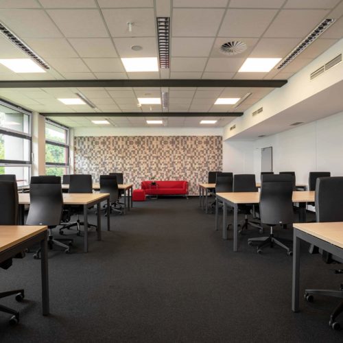 Our offices are bathed in natural light, featuring opening windows for optimal air circulation. Each space is thoughtfully furnished with a spacious desk, comfortable chair, and a sideboard for additional workspace. Enjoy the convenience of our on-site kitchen, equipped with a coffee machine, candy bar, and fresh fruits to fuel your day. As part of our comprehensive offer, take advantage of hotel services such as access to a gym, a secure car park, a restaurant, bar and outdoor garden.